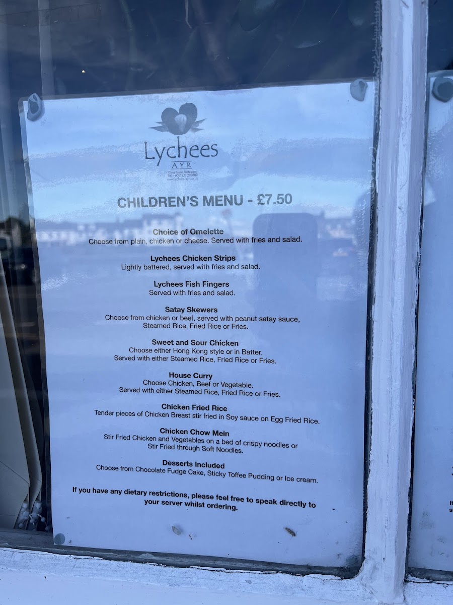 Located at 41 S Harbour St, Ayr KA7 2AX, United Kingdom, Lychees-Ayr offers a unique and delightful dining experience that stands out in the local food scene. The restaurant combines traditional and contemporary flavors, offering an array of dishes that cater to various tastes. Their menu is diverse, with a focus on Asian fusion cuisine, which features high-quality ingredients and a careful blend of spices.